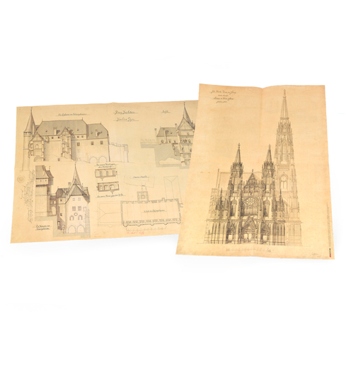 Návrhy Karlštejna a katedrály sv. Víta od Josefa Mockera (19. st.)